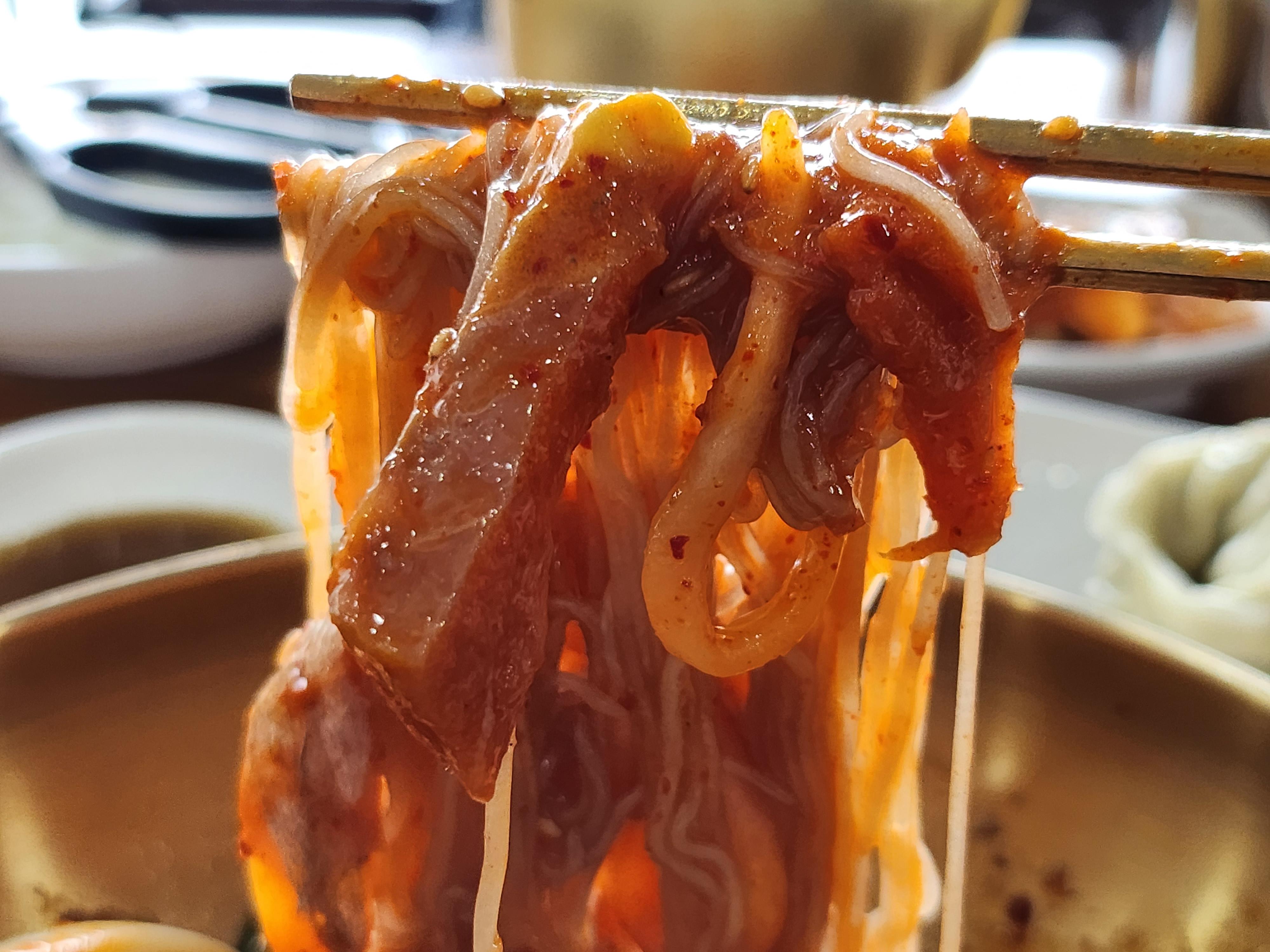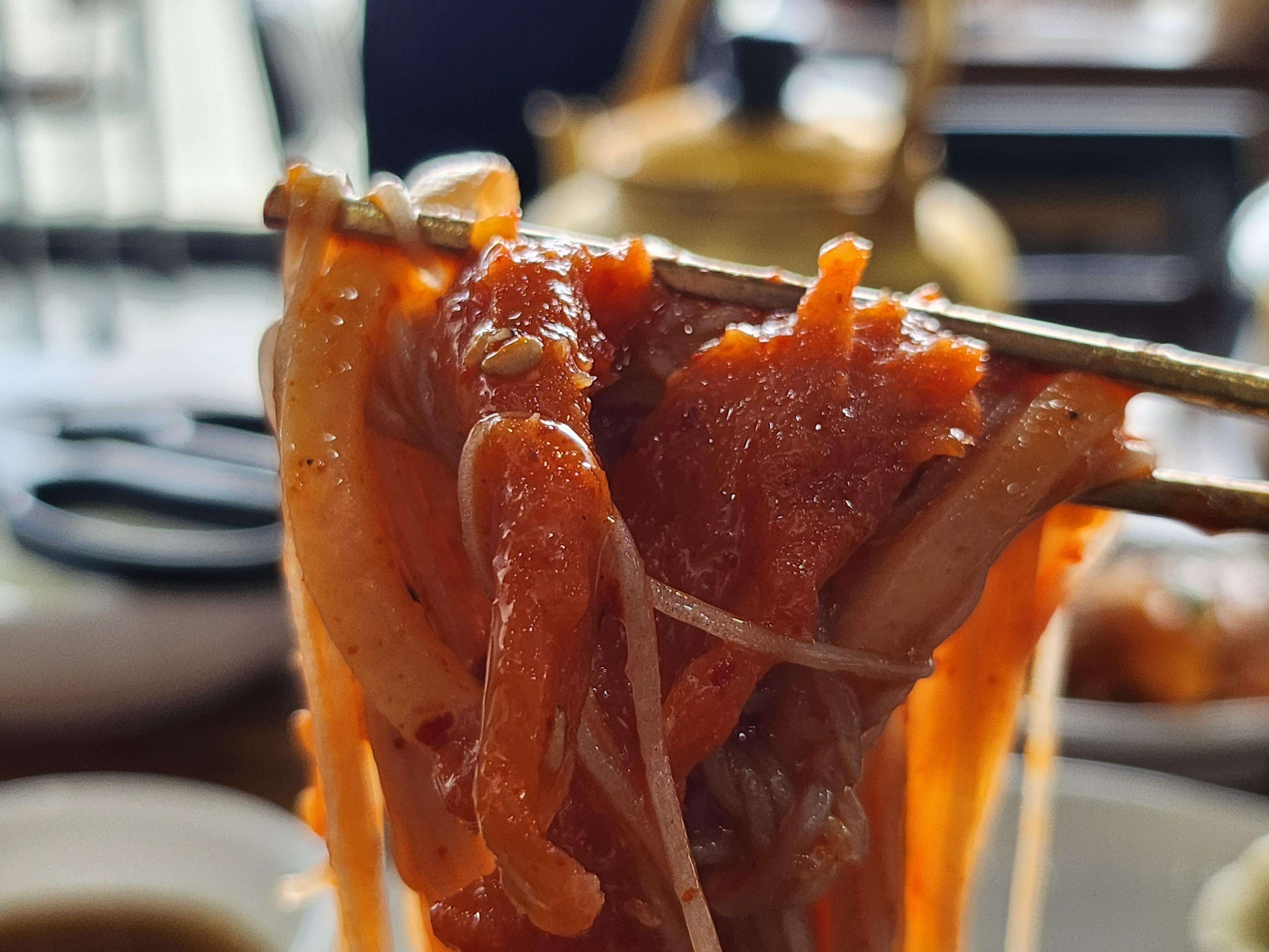 - 매콤달달하게 양념된 코다리와 쫄깃한 냉면의 조합이 자랑인 메뉴인데, 이게 자칫 잘못하면 너무 달아서 맛이 별로거든요. 근데 여기는 육수와 함께 잘 섞으면 간이 딱 제 입에 맞았습니다.